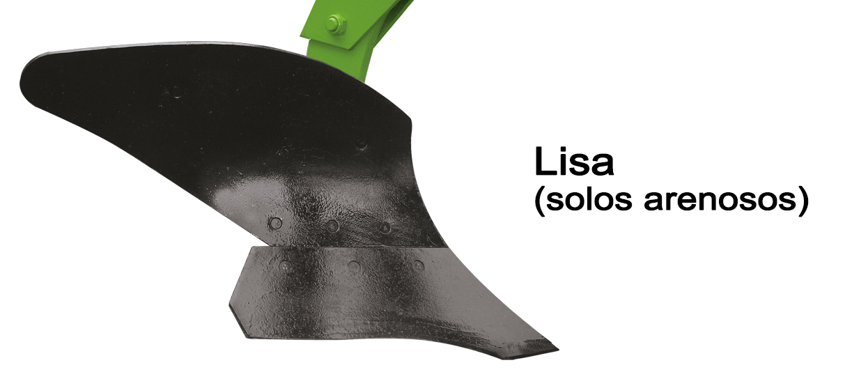 - Relha (Lâmina) e a “concha” da aiveca lisa em aço alto carbono 1060/70 com liga ao Manganês, temperado e revenido;