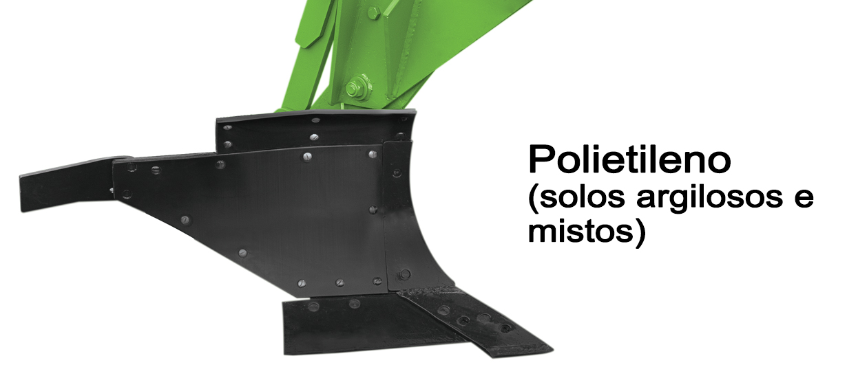 - “Concha” da aiveca de polietileno, em polietileno de ultra-alto peso molecular (UHMW);